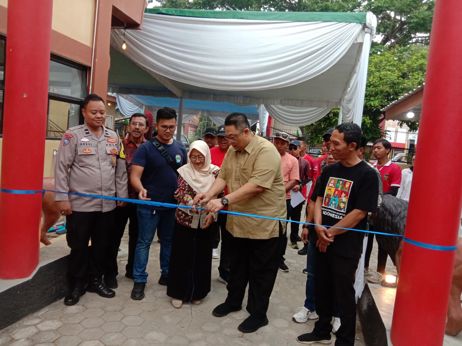 Terpantau Pihak pemkot metro melaksanakan pengguntingan pita pada grand opening tempat Pariwisata marsha garden .
