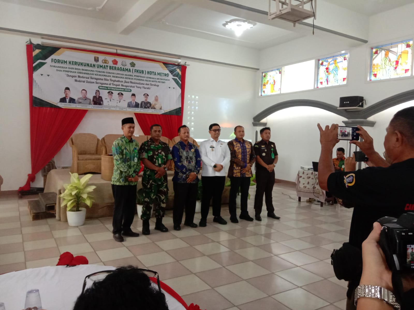 Forum kerukunan Umat Beragama (FKUB)Kota Metro mengadakan sarasehan dan doa bersama bertempat di gedung pertemuan Lt 1 belakang gereja katolik hati kudus kota Metro pada Rabo (3/9/2025).